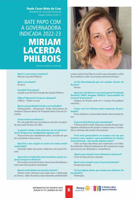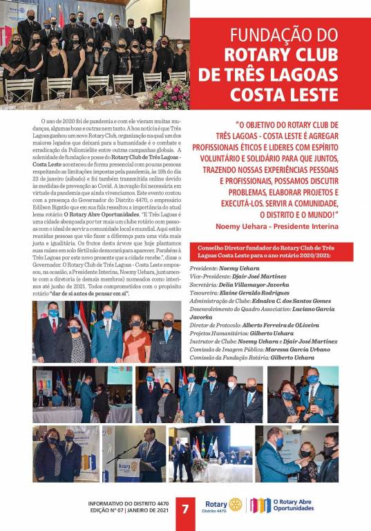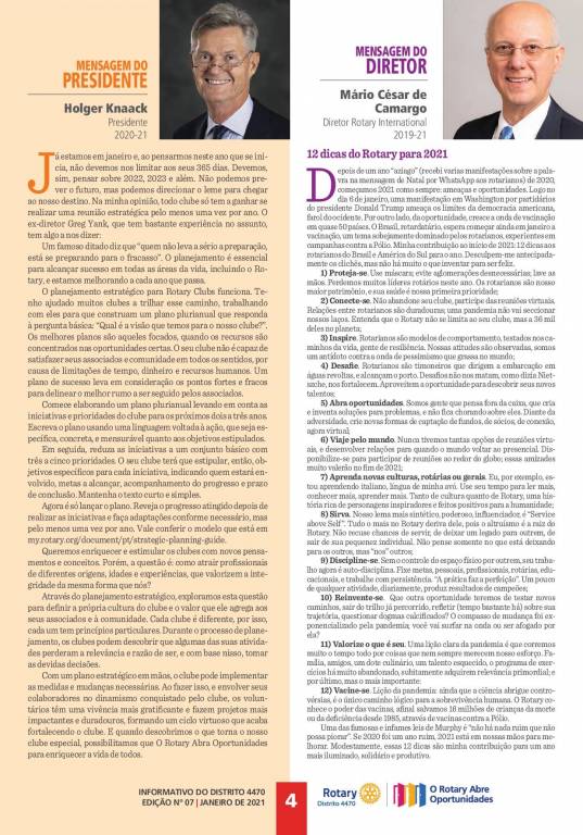 Informativo Rotário de Janeiro/2021 - Numero 07 - Carta Mensal