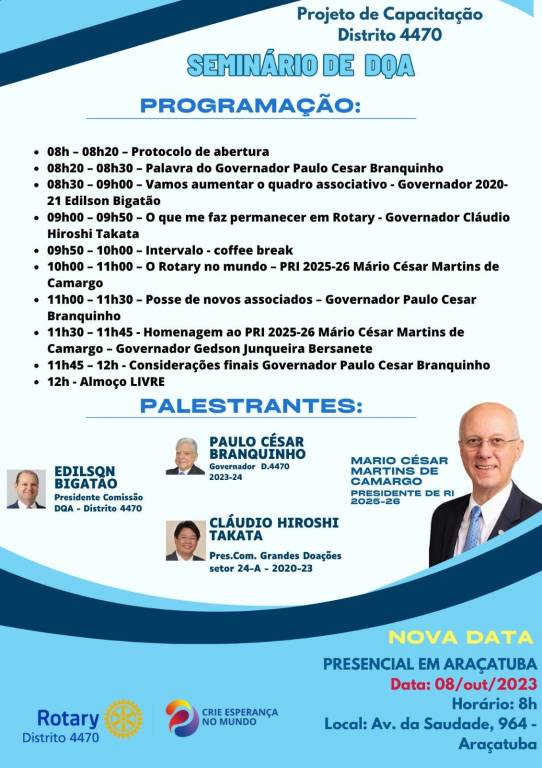 LOCAL: SEDE DOS ROTARY CLUBS DE ARAÇATUBA,