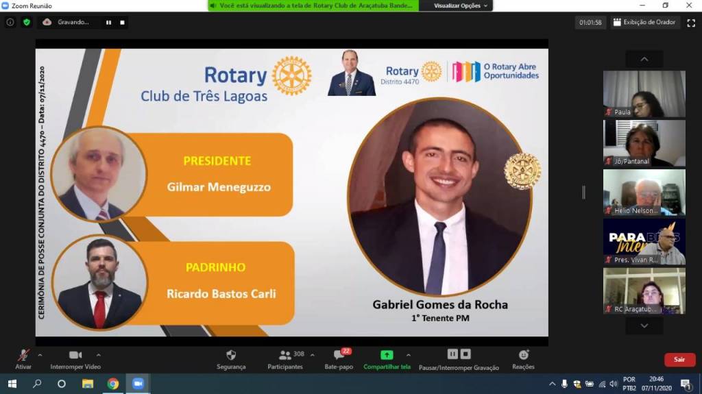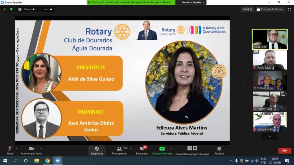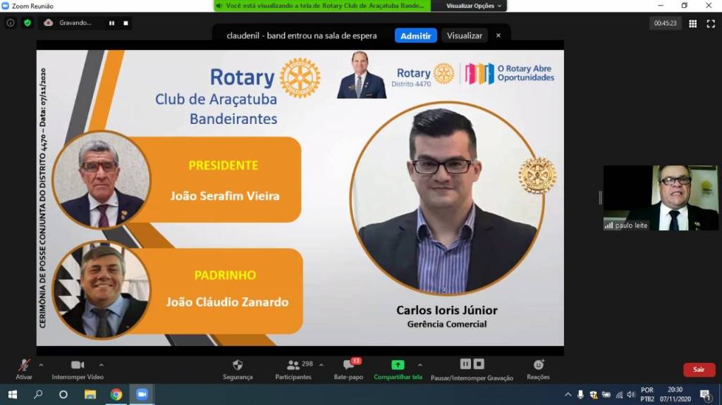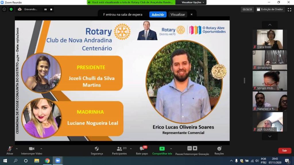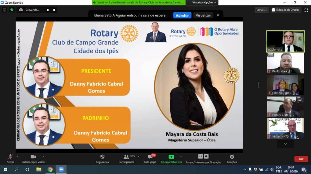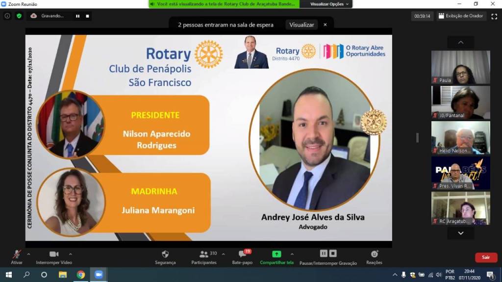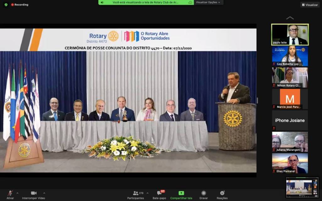 Gravação da Cerimônia Conjunta de Posse de Novos Associados do Distrito 4470 - 07-11-2020
