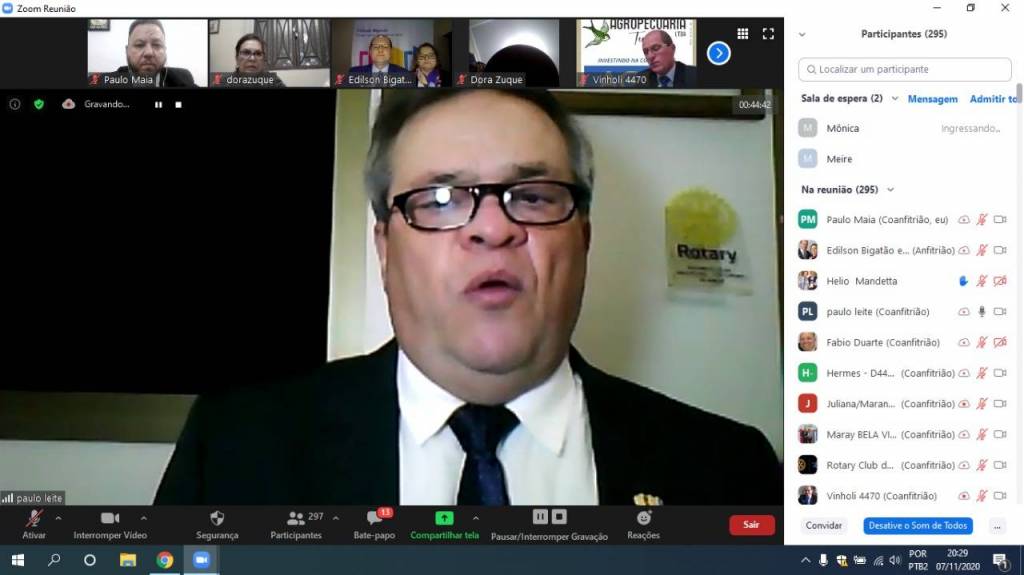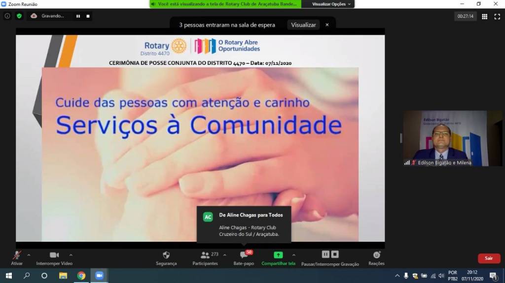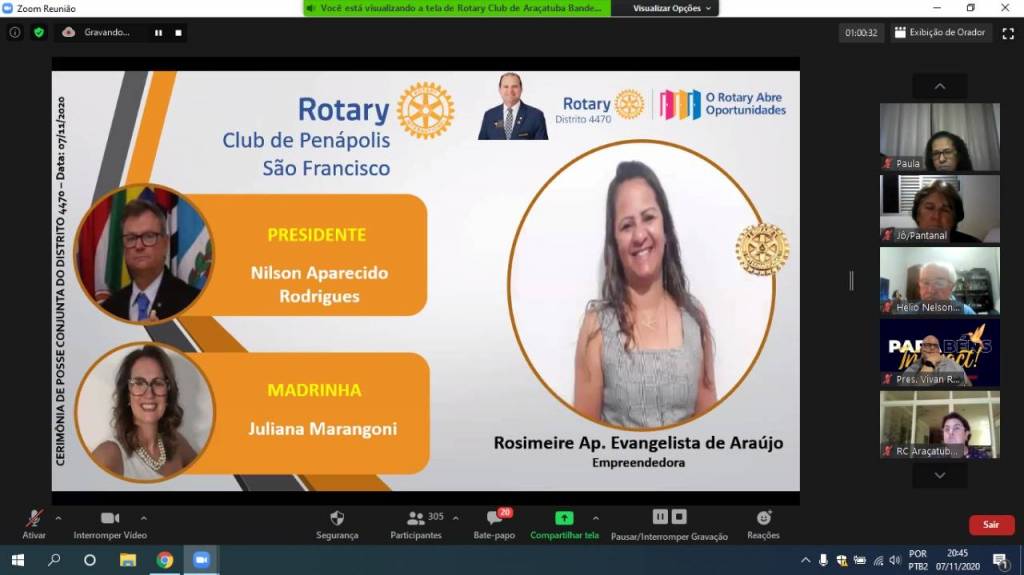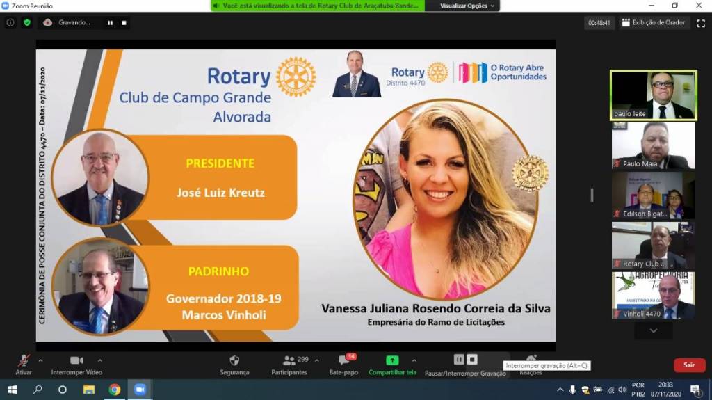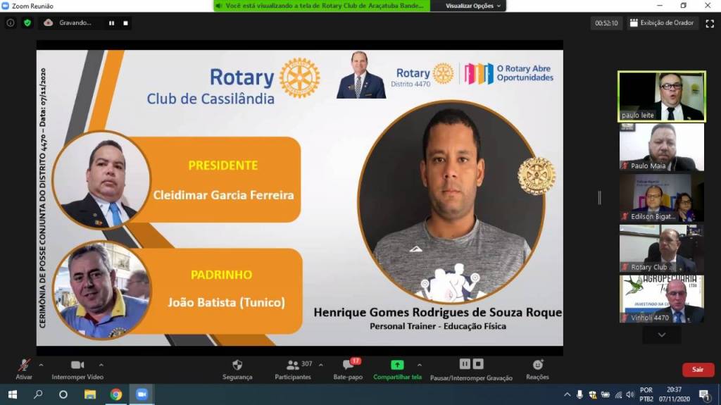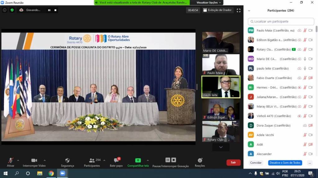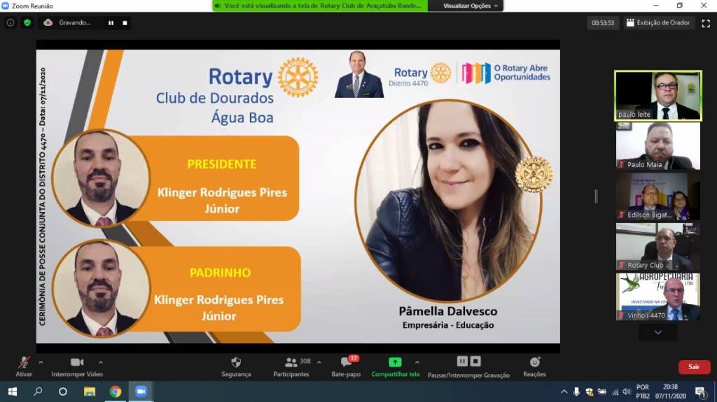 Gravação da Cerimônia Conjunta de Posse de Novos Associados do Distrito 4470 - 07-11-2020